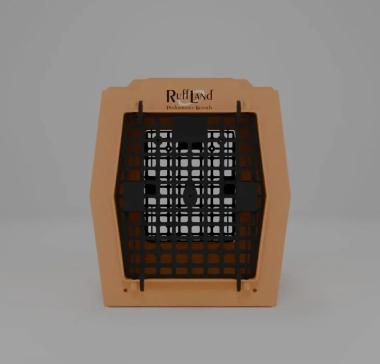 & Free ShippingThe Ruff Land Performance Kennels medium dog kennel is made of the highest quality materials. It comes standard with the double swing composite door. This unit also has a built-in handle which makes for easy transport. Vent hole pattern displayed is standard (1″hole size), with one finger hole in the back. Please note the double door version will add 1″ to the dimension.